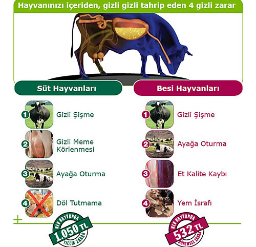 Çok geç olmadan siz de düzenli RUMISACC kullanmaya başlayın, Süt hayvanlarında 1 harcayıp 12, Besi hayvanlarında 1 harcayıp 8 tasarruf edin!